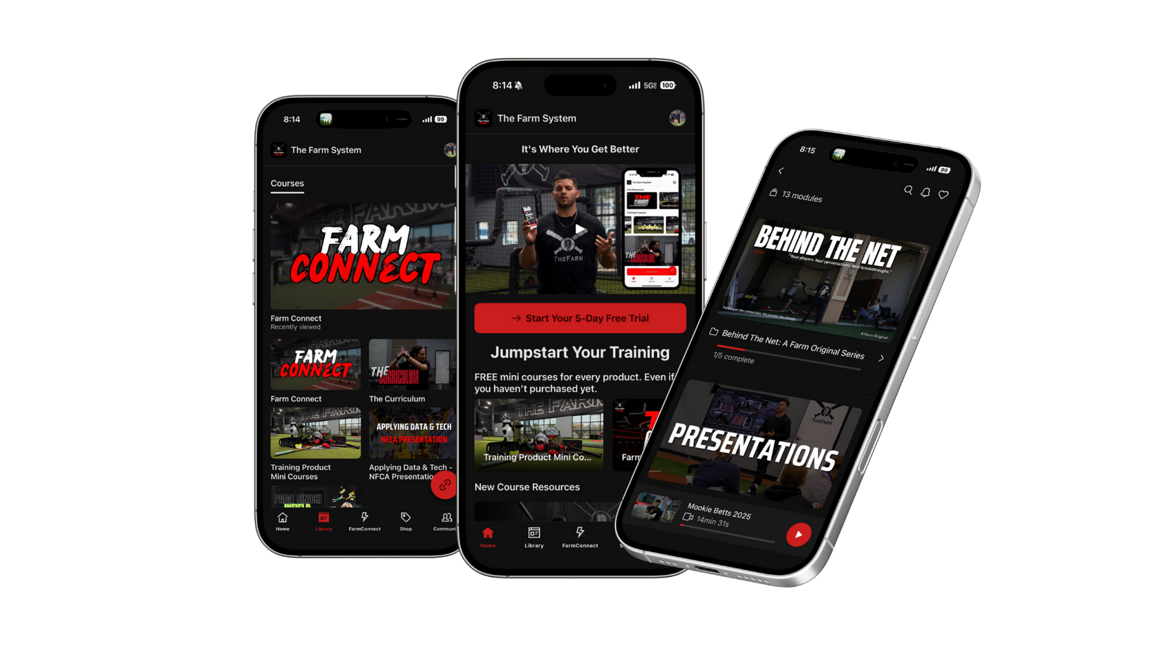The Farm app is your hub for everything you own and everything you’re building. Access FREE Resources, community, your purchased education, manage training tools, and unlock Farm Connect — our premium membership is designed with tools for coaches, players, and parents.